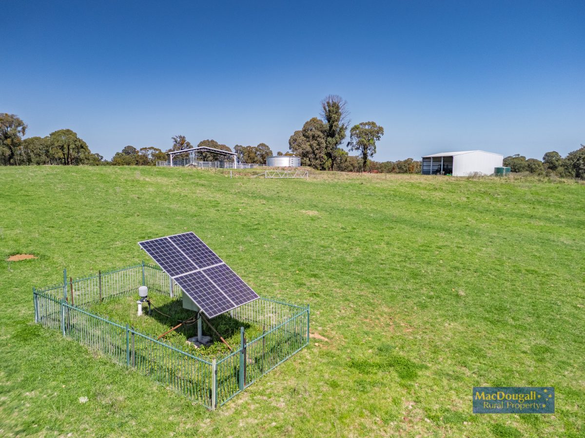 Water security is assured with not only 105,000 litres of rainwater tanks at the sheds and house, but dams, a creek and a bore equipped with solar-powered Grundfos submersible pump supplying a 104,000 litre “RhinoTank” plumbed 13 concrete troughs.