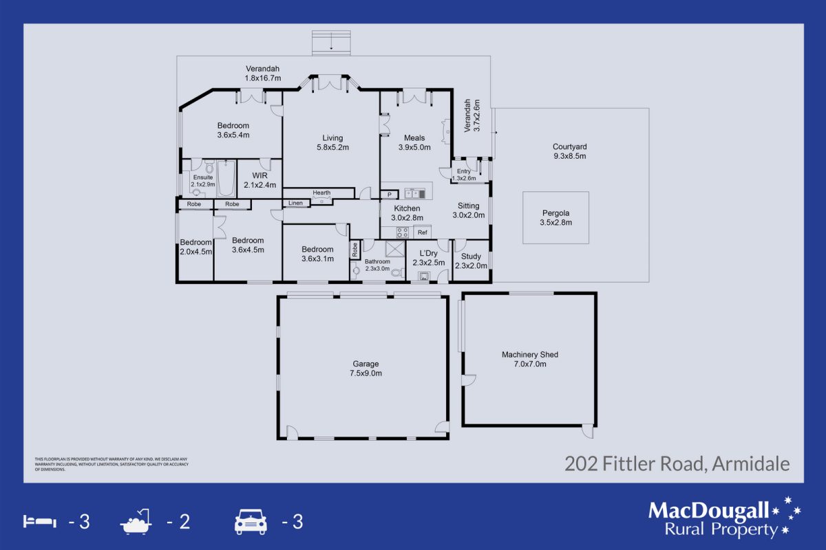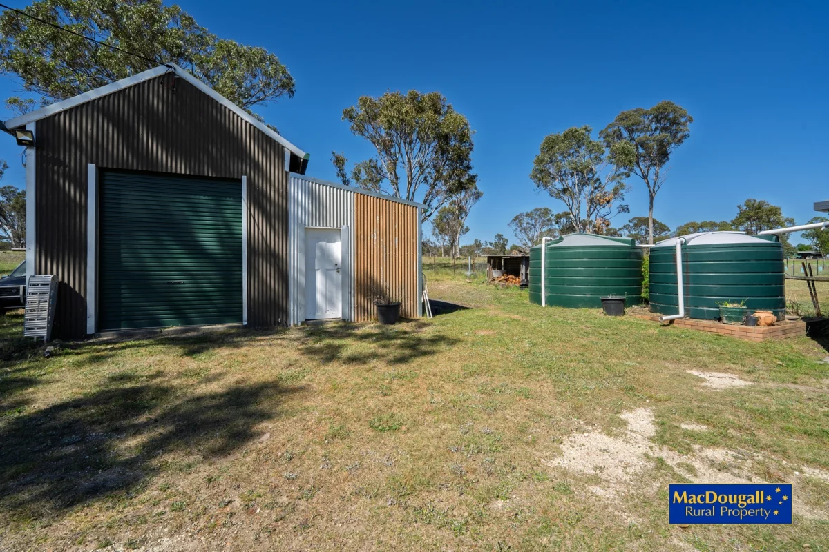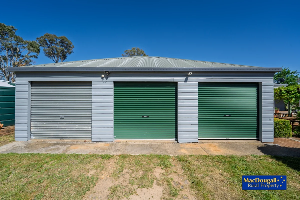 A three-bay garage is at hand, as is a machinery shed. Both have power and concrete flooring.